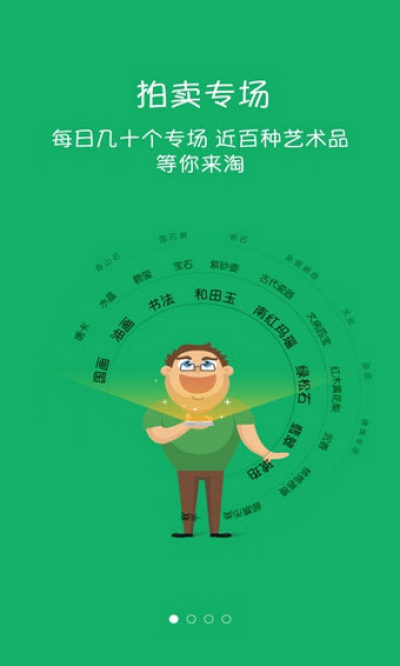 掌拍艺术是中国艺术网旗下首款专业手机在线拍卖客户端,集艺术品拍卖、艺术品交易、艺术品交流、艺术品送拍、艺术品资讯为一体,是中国最大的手机在线艺术品拍卖多重服务综合平台,涵盖古董,古玩,瓷器,玉器,和田玉,玉髓,玛瑙,翡翠,玉石,书法,油画,国画,碧玺,琥珀,紫砂壶,沉香等上百种产品类型,每日上线数十场拍卖专场,上拍近千种产品,权威保证产品交易的真实性和安全性,是广大藏友玩家、商家店主、艺术门客、大师专家、业余爱好者的第一选择。