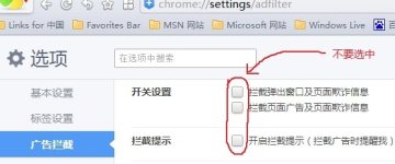 2.关闭360自带的广告过滤(选项地址:chrome://settings/adfilter)
