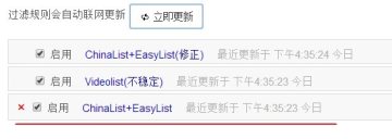 ChinaList+EasyList(修正):这是广告终结默认规则,它结合了多份过滤规则,可以屏蔽网页和绝大多数视频广告