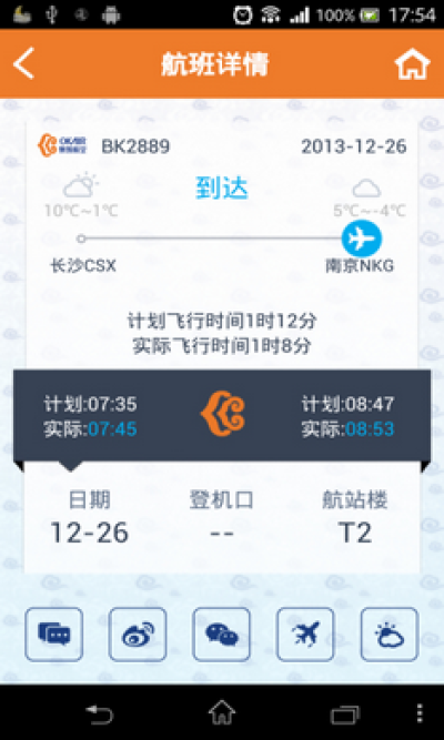 e奥游为广大旅客设计了航班动态板块,想要了解航班的最新情况,只需在手机客户端首页选择“航班动态”功能,输入出发城市、到达城市以及航班时刻或者直接输入航班号,即可进行针对性的航班动态信息查询;查询结果中还包括对目标航班的天气,航班状况详细的介绍。为您的乘机、接机、送机提供详尽的第一手资料,让您随时掌握航班动向,增加信息透明度,可以简洁有效,合理安排出行时间。