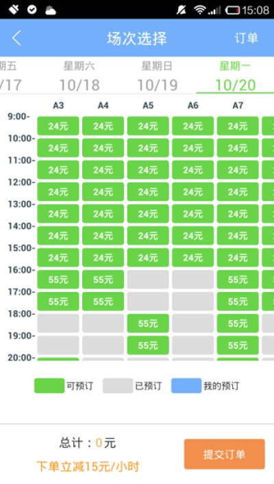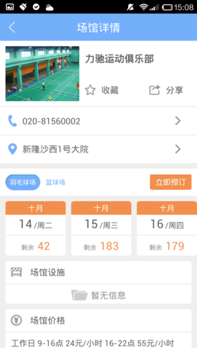 在线订场。全天在线查询预订场馆服务、场次和时间,随时随地订场运动。
