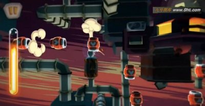 游戏为闯关类型的作品,在每个关卡中主人公小男孩会化身为一个炮弹,空中会有很多很多各种类型的炮筒,玩家们通过点击屏幕让炮筒发射,从而让小男孩在一个又一个炮筒之间前行,在前行中我们可以在画面左上角看到剩余距离显示,到达目的地后我们就可以收集神秘碎片并进入下一关卡。