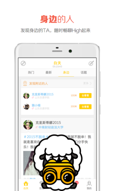 黑白校园独有的身边帖LBS推送的玩法,在身边的频道中,系统会根据各个用户的地址位置推送身边20公里以内的帖子,随时随地定位身边的黑白小伙伴。