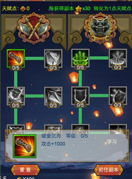 玩家通过通关副本后获得的星星,能够转化为天赋点。(每获得副本星星30,转化为1点天赋点)