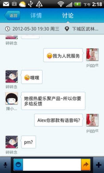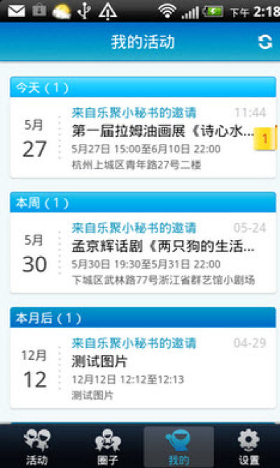[活动发布]便捷的发起多人参与活动,您可以随时管理活动的内容、时间、地点,即时获取参与者的参加情况,以及相关反馈信息。