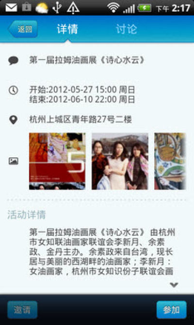 [轻松参与] 支持直接通过客户端,网页方式报名活动;只需点击"参加", 您就将快乐的开始聚会,即时接收到任何活动信息更改。
