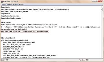3.在 CUSTOM_TIME_INTERVAL 这里修改你所需要设定的时间相对数值,例如:修改成1000的话,结果是 游戏中的1秒=现实1秒,游戏默认设定值是30,因此根据自己想要比例来输入(合理设置,60比较合适,比默认慢了一倍,调太慢了也很蛋疼的)