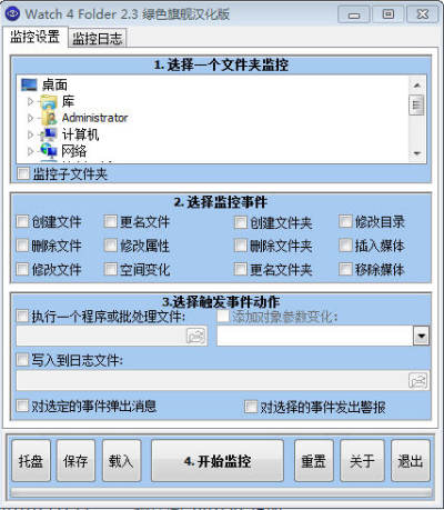 Watch 4 Folder是绿色便携程序, 无需安装过程, 解压任意文件夹即可使用... 非常小巧,轻便,简单易用的工具。本软件可以监控15个不同类型的事件,执行一个程序或批处理文件,或显示在一个事件的情况下弹出消息。它可以写入一个文本日志文件,并观看现场运行日志。