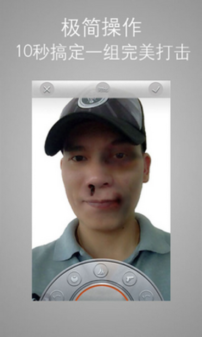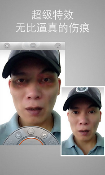 选取菜单内的打击工具及力度,点触图像,随即就会在图像上显示对应“伤痕”,及产生打击音效。随即可通过触屏方式对“伤痕”进行旋转、缩放等功能,取得真实得意想不到的伤痕效果!