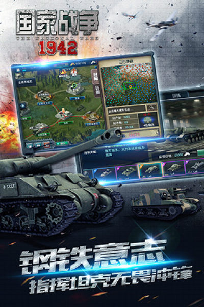 国家战争1942是一款以坦克大战为主要玩法的策略战争手游,游戏的背景以世界大战为基础,多个国际势力之间相互牵制战争,玩家将作为一个势力阵营的最高统帅来进行排兵布阵,本作的战争场面非常宏大带感,游戏丰富的坦克型号也让战争迷们兴奋不已。