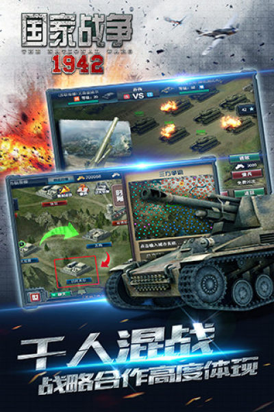 《国家战争1942》是一款以[全球战争]为核心的战争策略类游戏,在国战系统中,所属联合军,共产国际,轴心国三大势力的玩家可在多达300个城市要塞的世界地图上指挥坦克,自由移动或攻击,享受击败他国,占领城市,获得军费资源,跃居世界地图杀敌榜体验作为国家军队统帅调兵遣将,叱刹风云决胜千里的荣誉与快感。