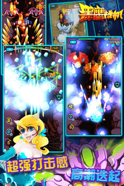 独创连击以及战斗特技双重玩法,让空战变的更加紧张刺激,更好的体现了战机之间的差异性。霸气的BOSS设计、千种弹幕组合、华丽视觉特效,众多亮点特色组合,将打造成一款高品质的手机游戏。
