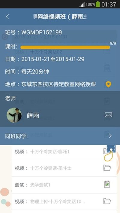 班级信息一手掌握,课程资料一览无余,互动交流一触即发,课后测试一应俱全,私播课程一键视听,学习安排一目了然。