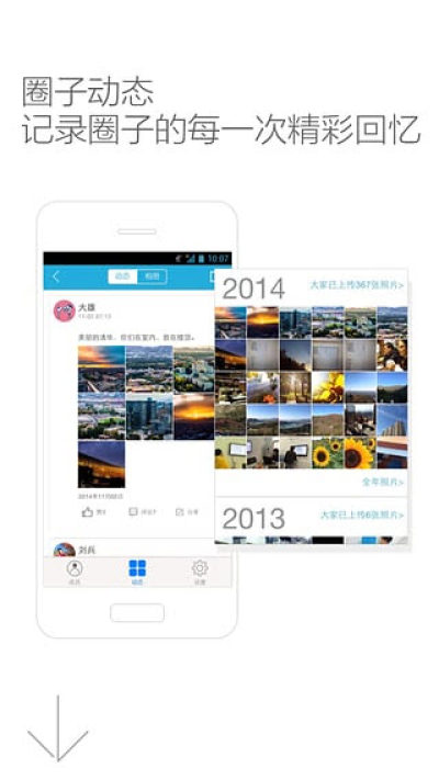 1.可以在圈子动态中发布照片、文字、通知、活动报名