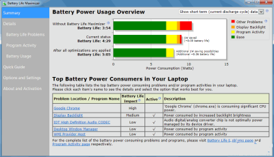 Battery Life Maximizer 是一款时刻不断扫描、查你的笔记本电脑电量使用情况,发现问题,且立马修正的电池电量管理软件。