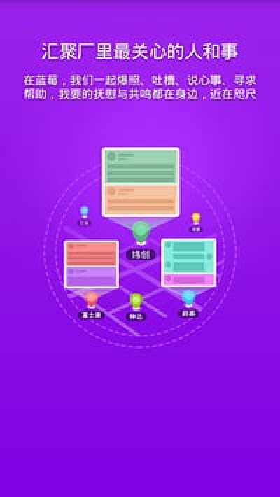蓝莓社区是一款手机上专为厂区打工者研发的社区交友应用,在厂里做事无聊了,孤单了,就用蓝莓社区寻找朋友聊天吧。
