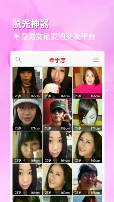 牵手恋是一款手机上实名婚恋交友软件,如果你还是单身,那么不妨来这里,说不定就能邂逅你的那个他或她哦。