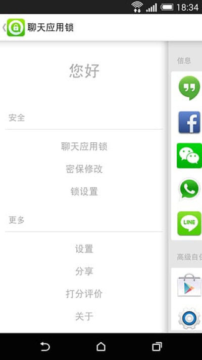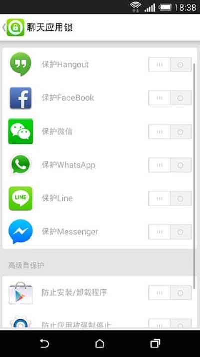 手机作为一个聊天通讯工具,对于每一个用户来说,手机里最大的隐私应该就是各种聊天记录了,比如短信、微信、QQ和一些其他社交聊天应用等等,大家肯定不希望别人在玩你手机时看到这些了,小编今天给大家推荐的这款聊天应用锁可以很好地保护大家手机中的任何聊天记录不发生泄露,感兴趣的朋友快来试试吧!