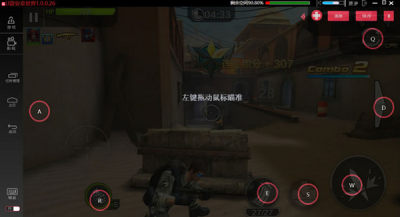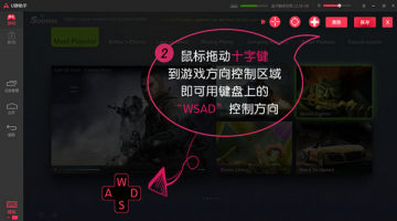 鼠标拖动十字键到游戏方向控制区域即可用键盘上的"WSAD"控制方向