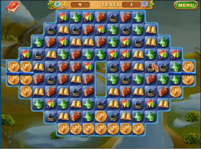 游戏的主要玩法还是类似于对对碰的消除,仅靠鼠标操作即可。不过要最先完成关卡中金币附近的消除,金币全部得到则通关,所用时间越短,所得金币越多。