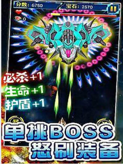 2.无尽的挑战模式,彰显你的实力。通过装备强化合成打造属于你的无敌战机。
