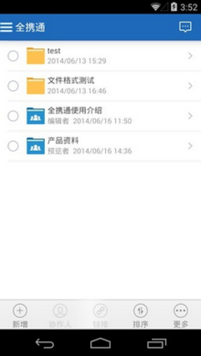全携通是一款优质的办公协作手机应用软件,支持多种格式的文件预览,在有 wifi 的条件下可将需要的文件离线(下载)到手机上,操作简单.功能强大,让您随时随地资源分享更轻松!