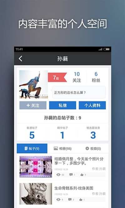 2.兴趣关注页,查看您关注的兴趣下所有帖子内容;