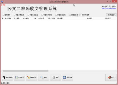 软件应用新型的二维条码技术实现对公文信息的快速录入,并根据公文签收登记、拟办、请办、批办、办结等流程,紧贴公文办理工作实际应用场景,设计了一整套功能全面的收文管理数据库系统。本软件执行机关公文二维条码使用规范(GB0626-2005),同时兼顾手动录入,公文二维码扫描录入需配备扫描枪硬件设备。