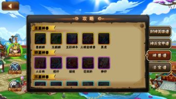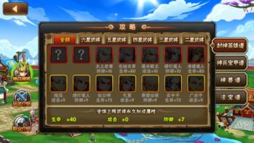 神兵神将攻略:封神英雄谱、神兵宝甲谱、神兽谱、法宝谱。在这里面可以了解游戏中每个战将,兵器,神兽,法宝的属性图鉴