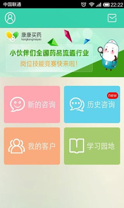 1.新的咨询:在线解答来自康康买药(用户版)用药咨询;