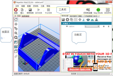 运行Repetier-Host软件,主界面如下图