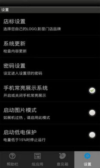手机常亮展示是一款基于安卓手机的卖场辅助销售软件,它可以自动保持屏幕常亮且不被用户关掉,并循环播放视频内容,为手机进行持续不断的宣传,是各家手机卖点必备应用!