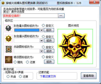 cf击杀图标修改器能帮助你修改CF穿越火线人物击杀、爆头、喷漆等图标,让你玩的穿越火线游戏异于其他玩家,让你的游戏画面更加有特色。这款软件还能修改被击杀的音效,使你玩起游戏来更加的趣味。