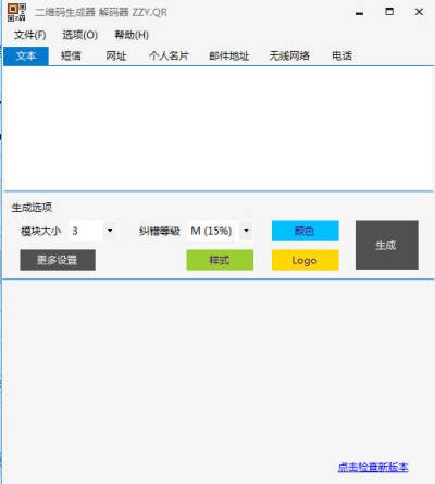 可按分类生成:包括文本、短信、网址、名片、邮件、WIFI、电话。