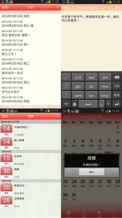 - 当前设置的事件列表显示,包括设置的日记和提醒,并会根据时间顺序排列显示