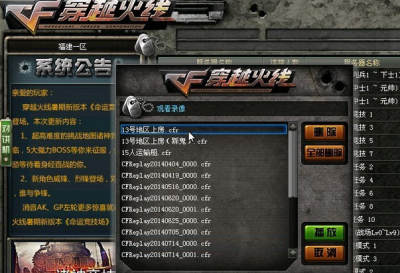 直接将下载下来的所有录像文件放到CFSystem的Replay文件夹里即可,然后进游戏仓库可观看录像
