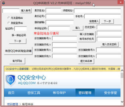 QQ申诉助手(2015QQ号码找回申诉辅助工具)是一款占用内存小绿色免安装的QQ号码丢失或者忘记密码后辅助工具,我们应该都有过密码丢失或者被盗的情况吧,申诉的时候是不是感觉到很麻烦呢?现在为大家介绍这款QQ号码申诉辅助软件,该软件能够简化您的申诉过程,能够有效的方便和查询申诉状态。