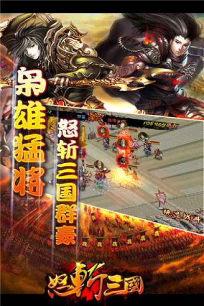【金将伴随】赵云、诸葛亮、关羽,唯你所用所谓战争只是浮云,集耀眼名将,弱胜强玩策略,领略智慧惊喜!组团PK,抵抗异族,国王你最强!来,热血攻三国《怒斩三国》跨服国战现已激烈开战!《怒斩三国》 新一代策略手游巨作!媲美端游的3D画面、5V5同屏大战、还有超强打击感!你的君王梦,酣畅淋漓实现!集耀眼名将,弱胜强玩策略,领略智慧惊喜!组团PK,抵抗异族,国王你最强!来,热血攻三国!