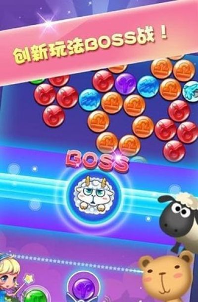 美女打泡泡是一款休闲益智令人着迷的泡泡龙游戏。挑新玩法挑战BOSS,萌萌星球等你来开启,在经典的游戏模式中增加了独有的BOSS战,每个场景都有独特的星座守护者等待你的挑战。多种多样的奇趣道具供你使用。打BOSS,秀操作,耍道具让你爱不释手。欢乐之旅由一段美丽的故事带你进入。前所未有的体验,带给你神奇的魔法之旅。