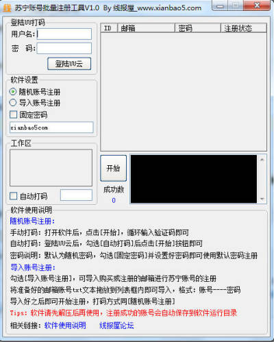 PS:注册成功的账号会自动保存到软件运行目录下,请一定解压后再使用软件