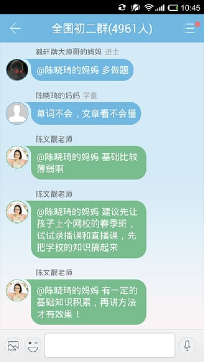 1.答疑:教师答疑群、活动群等丰富多彩的群形式,让你和同年级的家长/孩子共同交流,让老师为你答疑解惑;