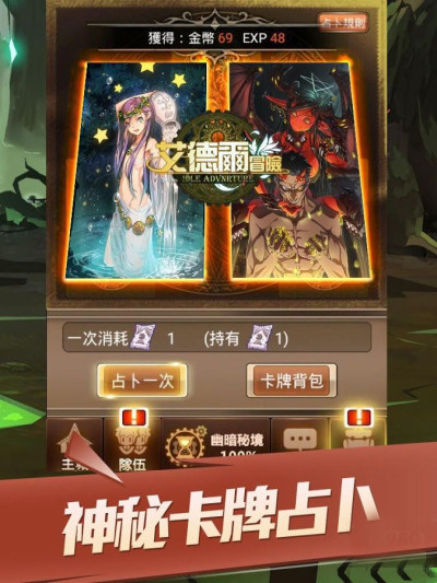 艾德尔冒险:神的国度是一款日式魔幻冒险风格的神秘卡牌类游戏,「次时代」挂机新作艾德尔冒险,拥有极具亲和力的日式动漫画风,流畅的骨骼战斗动画,丰富的战前策略,特色的换装系统,全自动化休閒养成,是一款精品级挂机类手游。