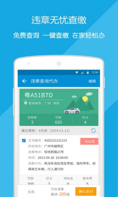 4.违章查缴:免费查违章,手机轻松缴,支付宝支付,从此告别去车管所交警队排队办理