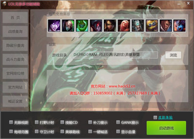 lol无奈多功能辅助,完美融合lol盒子,可以查询战绩、隐藏分、战力,补刀提示、gank提示,一键喊话等!