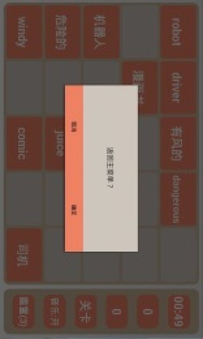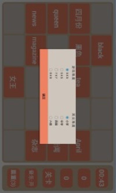 游戏中加入了小学、中学以及四、六级英语单词为主要内容。开始一个新游戏,完成任务所用时间越少,得分越高。