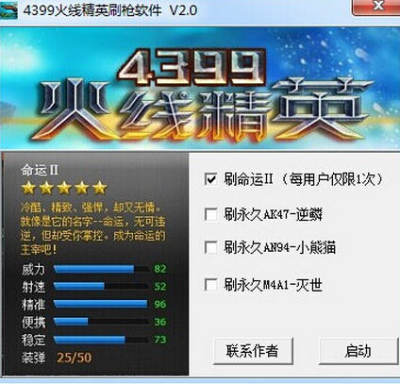 4399火线精英刷枪软件是一款能够帮助玩家免费刷枪的软件,大家只需要一键就能刷到梦寐以求的AK47、M4A1,刷到的枪是永久免费的哦,而且本款火线精英刷枪辅助完全免费,安全无毒哦!您可放心使用,绝对不会被封号的!