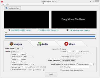 VideoDetach Pro(视频声音图像提取工具)从一个视频文件提取他们的图像,声音,甚至其他影片。这是一个多用途的视频软件的优势,将几乎所有的任务,你可以执行从一个视频文件。