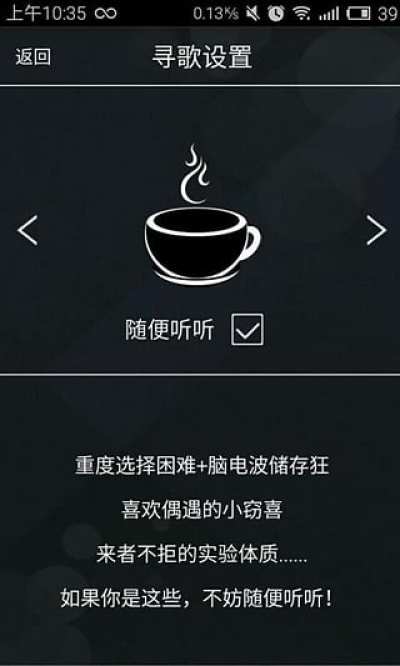 击音是一款非常好用的手机音乐播放器软件,界面简约,操作简单,独居特色,你只需要敲击几次,就能搜歌,收藏歌曲等等。