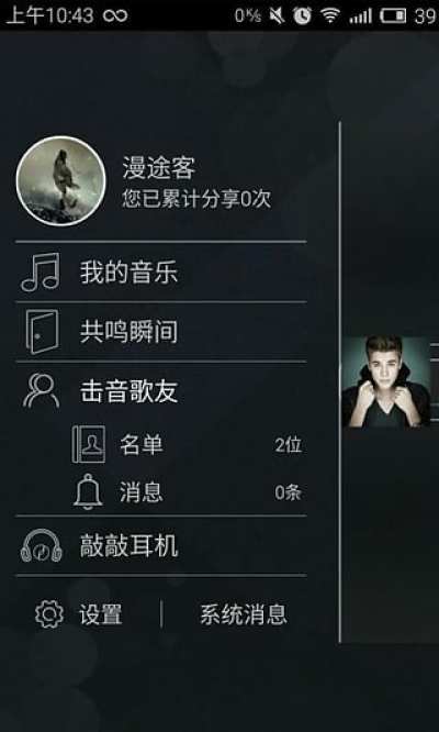 简约界面,大图标设计风格方便操作,听觉震撼也讲视觉享受。击音APP,将你的敲击化作神奇。敲击三次,搜索歌曲与歌友,百万在线歌曲瞬间推送,偏好相近歌友即时推荐。敲击两次,收藏歌曲共鸣瞬间,立时生成音乐日记,记录听歌心情,可自动同步到常用社交平台。
