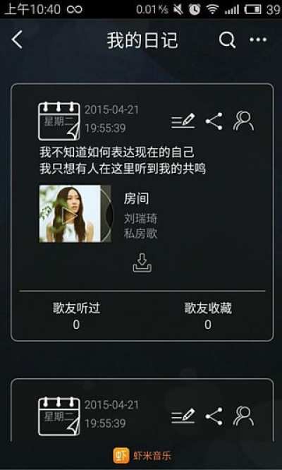 2.加入广场功能,可以查看关注歌友的音乐日记和热门的音乐日记